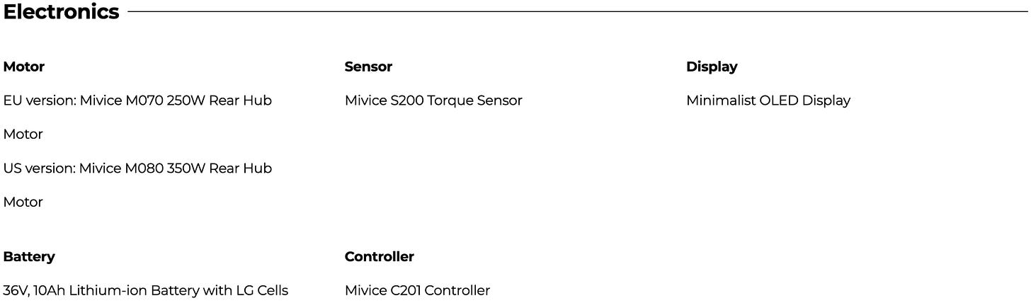 Features: powerful Mivice M080 350W motor hub, a long-range battery, and a built-in USB port.