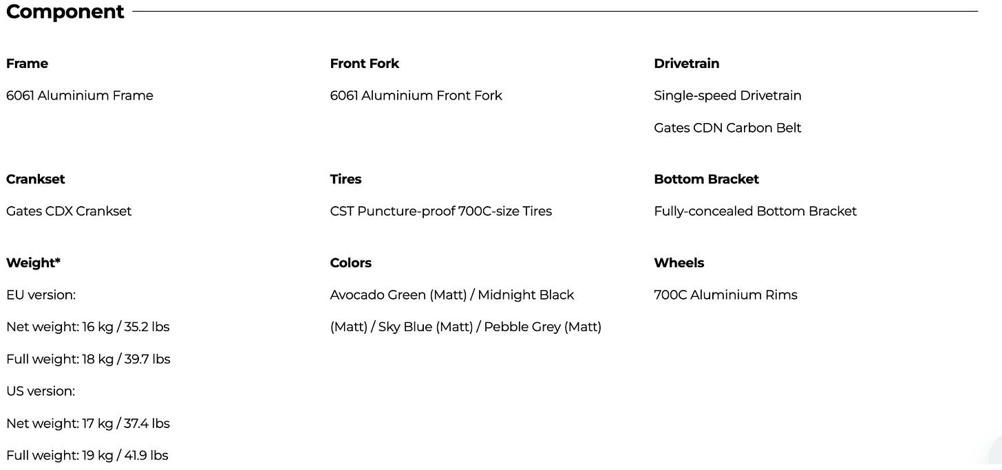 Specs - 8/10 (at the price point, it is a great bike that can take you from A to B)