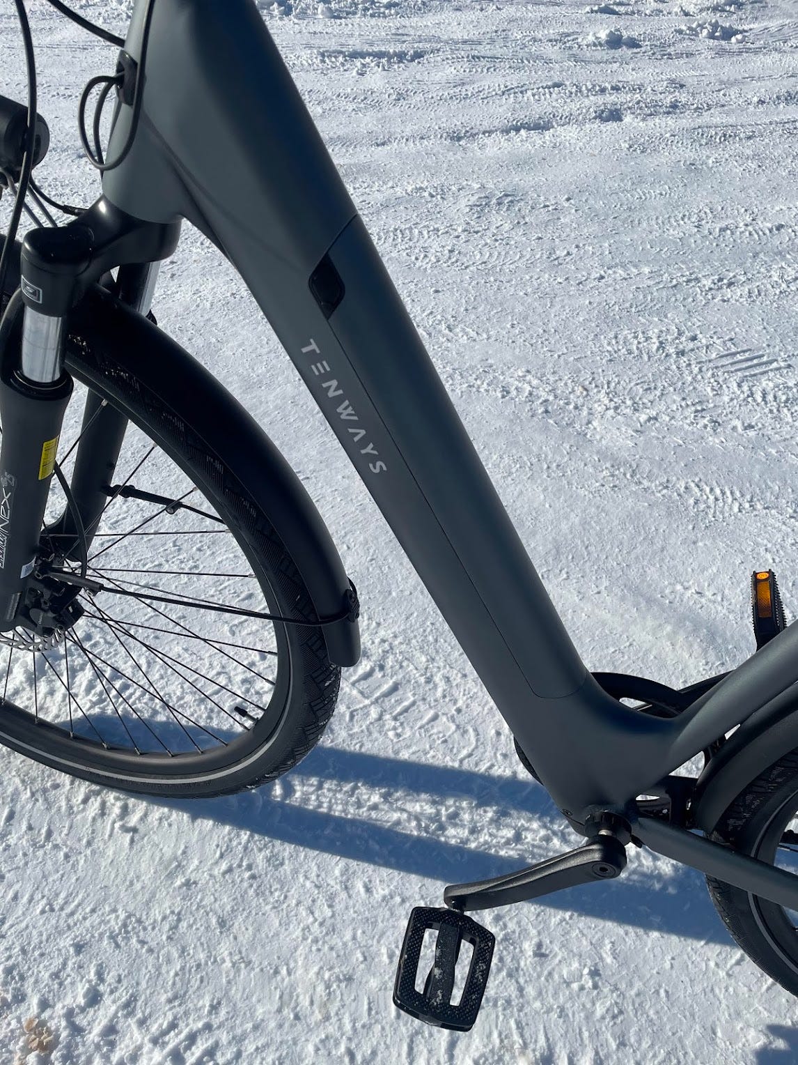 Most direct to consumer eBikes (especially those with carbon belt drives with little to no adjustment needs), like the CGO800S, are basically 90% assembled. TENWAYS provides all of the necessary tools to assemble as well as helpful instructions on how to do it. I received a beautiful pebble gray colorway frame. The rear fender is already installed along with integrated front and rear rear lights. The bike also comes equipped with a sturdy kickstand and an adjustable stem that is easily adjusted up or down for more comfortable positioning.